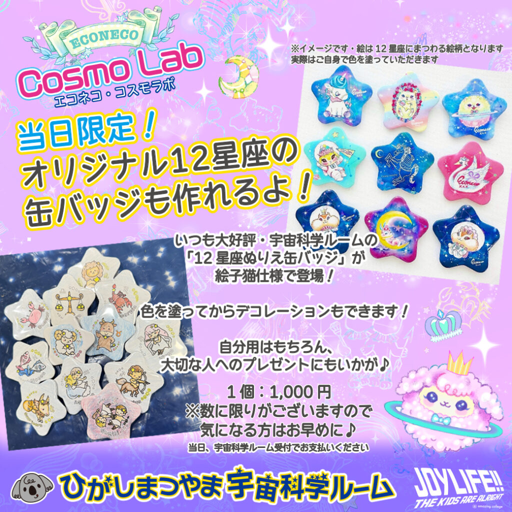 アートの他にも、12星座の缶バッジ作りも★