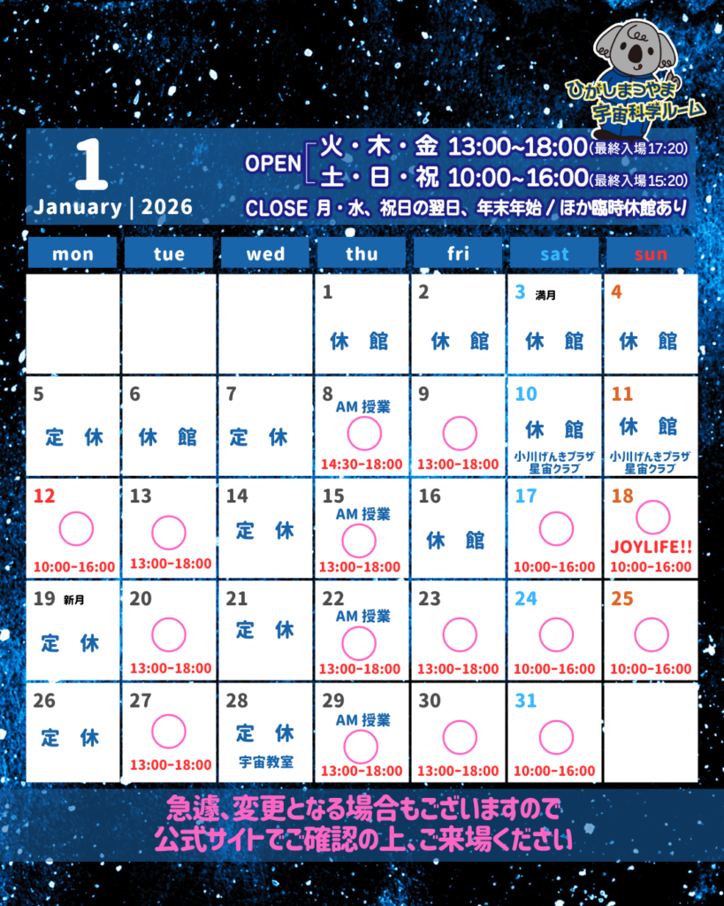 2026年1月は宇宙科学ルームもイベントやるよ!